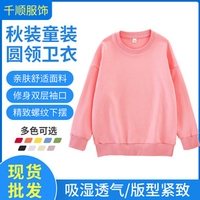 秋装童装落肩儿童圆领卫衣新款圆领中大童纯色薄款长袖...