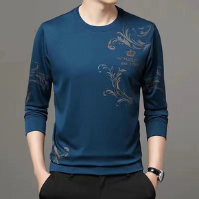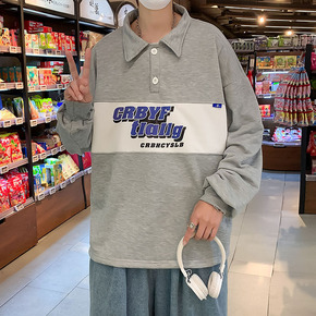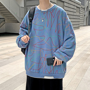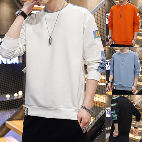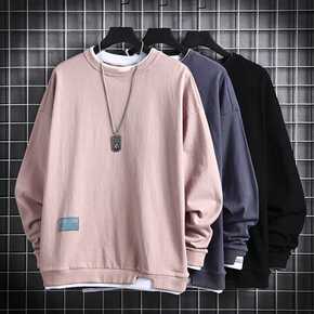春秋季新款ins假两件圆领卫衣男士加绒长袖T恤宽松...