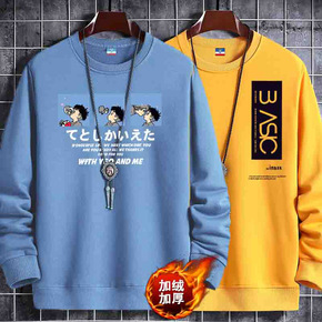 新款纯色卫衣男宽松时尚休闲男装秋季套头圆领长袖大毛...