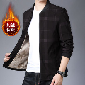 大码男装外套加厚加绒冬季中老年夹克休闲轻商务螺纹款...