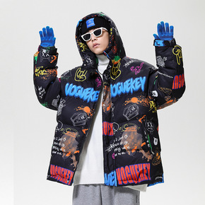 日系2021冬新款抖音涂鸦设计连帽棉衣棉服外套男...