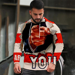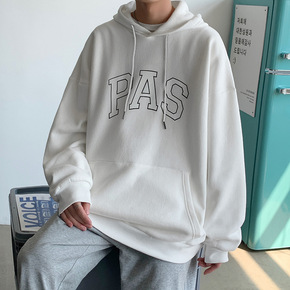 2022春季新款男士长袖连帽休闲港风青少年纯色印花...