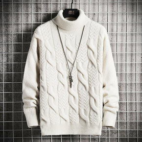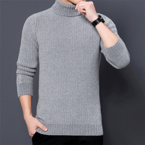 男士高领毛衣秋冬套头毛衫厚款针织衫韩版修身潮流纯色...
