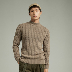 新款秋冬羊毛衫男加厚中青年半高领毛衣纯色针织打底羊...