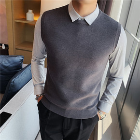 2019秋冬新款男士毛衣 潮流修身拼色V领大码男式...