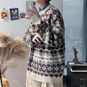 马登工装日系复古冰岛费尔岛北欧毛衣慵懒厚实打底提花...