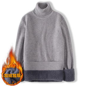 代发加厚毛衣男秋冬季高领毛衫韩版潮流加绒线衣纯色打...