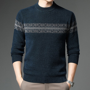 中年针织衫冬季韩版毛衣男士套头圆领长袖针织衫长袖加...