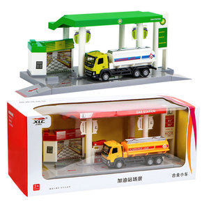 儿童玩具车模型1:50仿真油罐车城市加油站场景摆件...