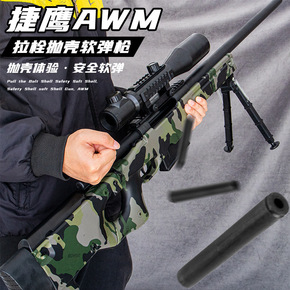 捷鹰AWM儿童玩具枪狙击抛壳软弹枪男孩超大号吃鸡全...