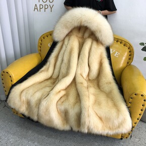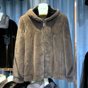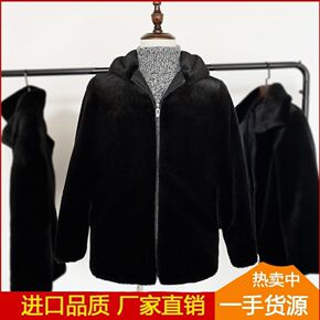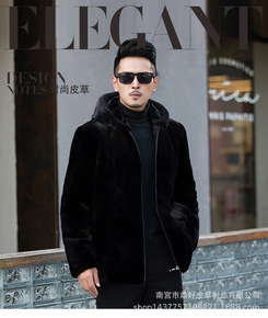 2021欧美新款海宁水貂毛皮草男连帽休仿闲兔毛貂皮...