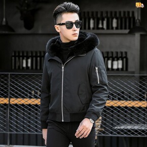 2022冬季水貂皮毛领大衣男士海宁皮衣兔毛内胆山羊...