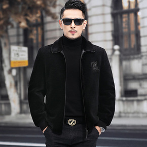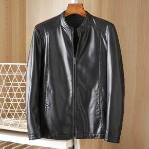 水洗软中老年人皮衣男爸爸装加绒加厚春秋季保暖加棉男...
