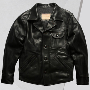 日系复古做旧油蜡马皮皮衣男棕色阿美咔叽重水洗调度员...