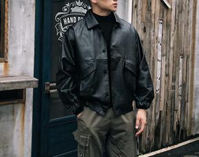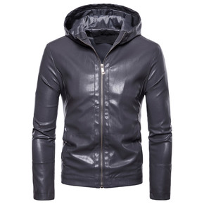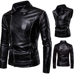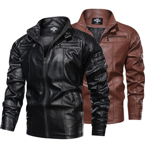 跨境2021秋季男装新款皮衣 亚马逊欧美男式纯色连...