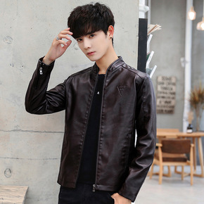 跨境皮衣男2020秋冬新款男士时尚皮衣青年休闲立领...