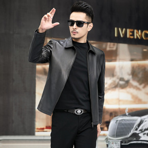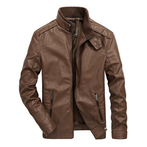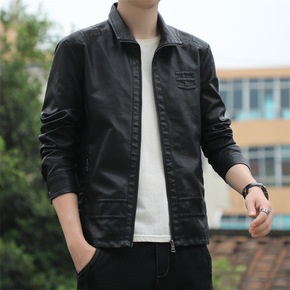 跨境货源春秋季皮夹克男休闲外贸翻领皮衣男士修身外套...