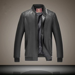 皮衣男春秋季爸爸装百搭外套中老年运动休闲加绒皮夹克...