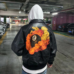 速卖通亚马逊加肥加大码飞行员夹克男装加绒刺绣机车皮...