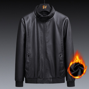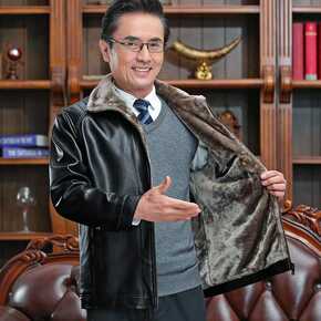 秋冬季中老年皮衣男加绒加厚pu皮夹克中年男士大码毛...