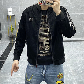 男士立领商务休闲皮衣男士花花皮衣外套男士兔头刺绣皮...