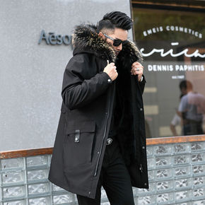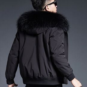 男士派克服2021新款冬季外套真貉子毛领可拆卸派克...