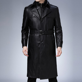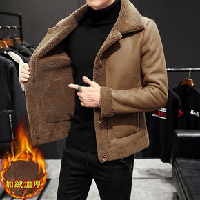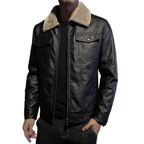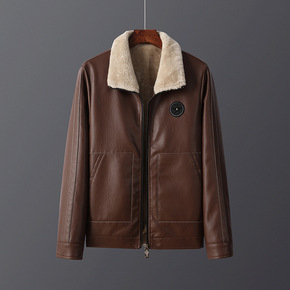 亚马逊男士中长款皮毛一体冬季加绒翻领皮衣PU加毛绒...