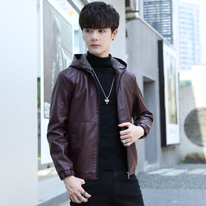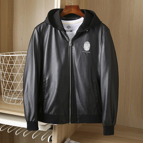 2022春秋新款潮男士连帽皮衣皮夹克中老年男士休闲...