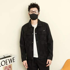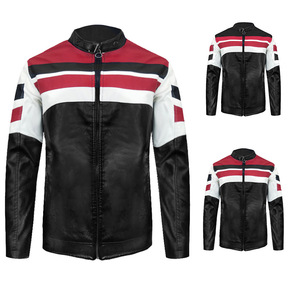 皮夹克2022秋新款条纹工装男士修身潮流痞帅春秋季...