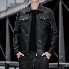 男士皮衣休闲外套春秋一件代发修身型帅气青年潮流机车...