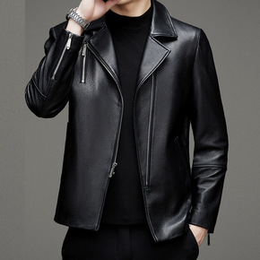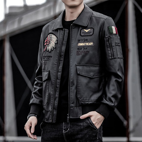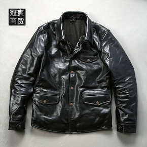 司闸员油蜡茶芯马皮皮衣男士翻领阿美咔叽机车水洗真皮...