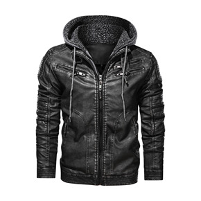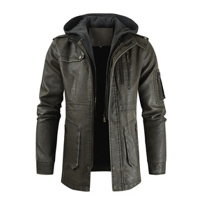 跨境欧码男士休闲复古皮衣外套亚马逊多拉链帽子PU皮...