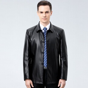 高档秋冬季新款海宁皮衣男纯色棉羊皮夹克中年爸爸装翻...