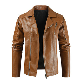 厂家跨境男士皮衣秋季复古机车水洗潮男翻领欧美男装P...