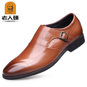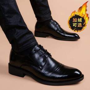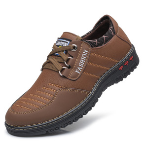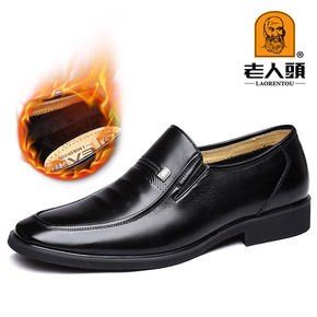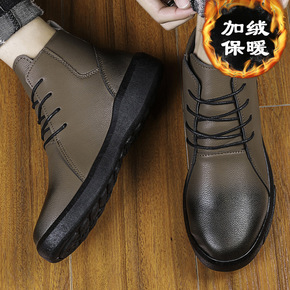 冬季中老年皮鞋加绒加厚平底保暖棉鞋男户外旅游鞋软底...