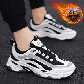 男鞋2021冬季新款加绒保暖老爹鞋休闲时尚网面鞋百...