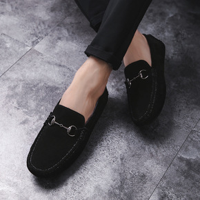 2020新款冬季豆豆鞋男加绒保暖磨砂休闲翻毛皮鞋日...