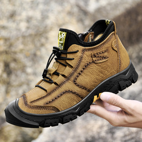 秋冬季真皮户外登山旅游鞋软底休闲皮鞋男中老年加绒保...
