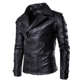 【欧码】跨境电商 爆款 男士机车多拉链男装皮衣 皮...