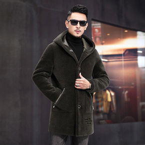 海宁皮草羊剪绒外套男皮毛一体中长款羊羔毛毛外套男士...