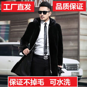 仿皮外套男仿水貂皮大衣中长款海宁仿水貂毛加厚皮毛大...