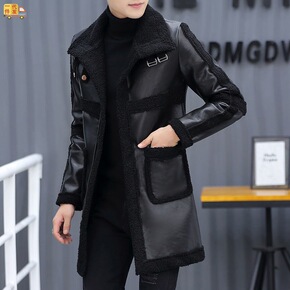 冬季男士皮衣韩版修身中长款PU皮外套潮流男装皮毛一...