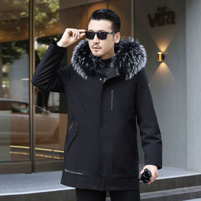 服男士真毛中长款可拆卸兔毛内胆活里活面爸爸装冬季皮...