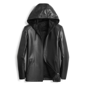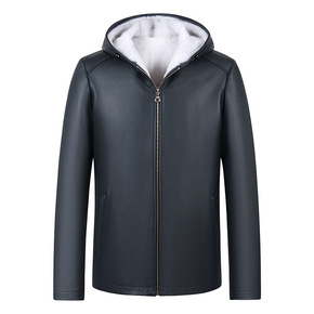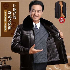 冬季中年男装海宁皮衣羽绒内胆皮夹克中老年加绒加厚大...