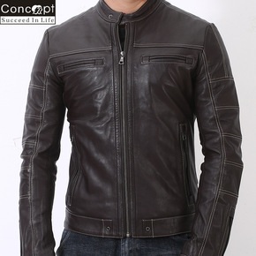 欧码 时尚精品朋克男士皮衣卡丽皮机车皮衣修身哈雷皮...