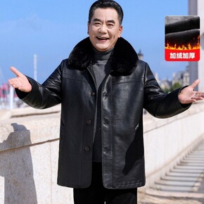 中老年皮衣男外套加绒加厚中长款夹克爸爸冬装外套老年...