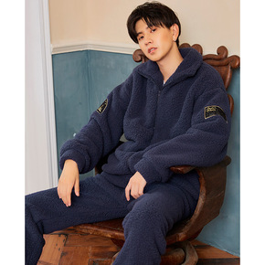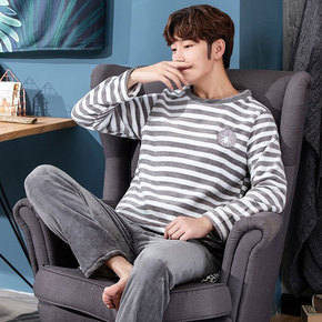 冬季男士家居服 男士夹棉厚家居服两件套 珊瑚绒翻...
