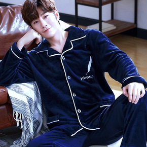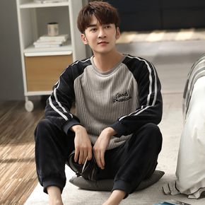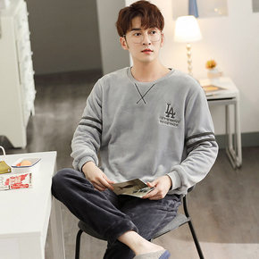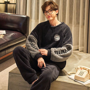 珊瑚绒睡衣男冬季加厚加绒可外穿时尚保暖法兰绒家居服...