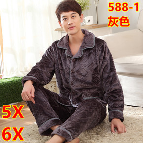 冬季男中老年人200斤珊瑚绒肥佬加厚睡衣套装加肥加...