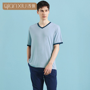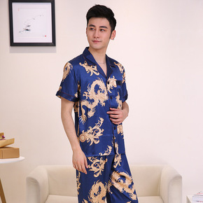 春秋季丝绸睡衣男士夏季睡衣短袖男薄款加大码仿真丝绸...